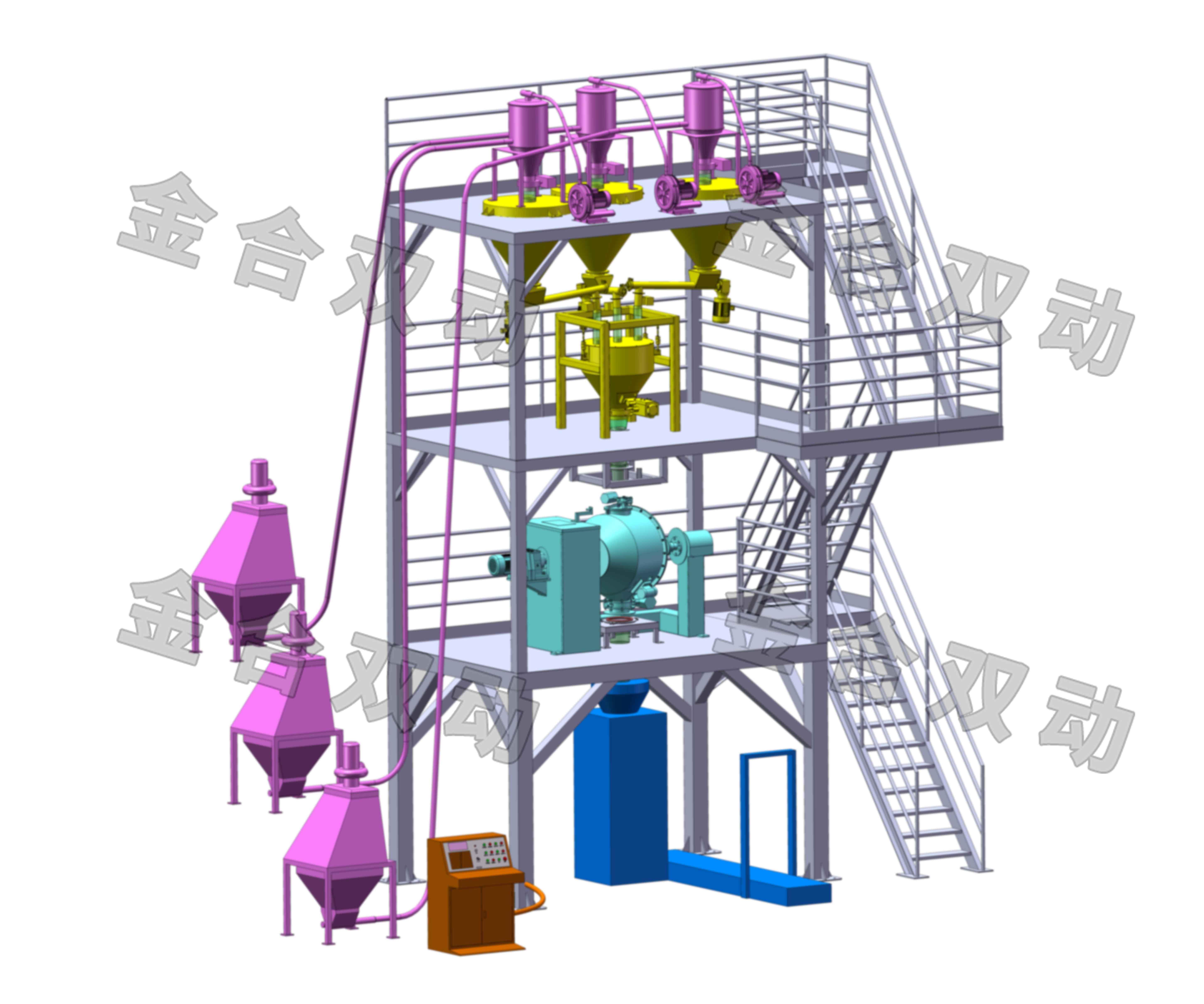 粉体自动化配料计量集中生产线是用户粉体处理中的重要一环,该系统的自动化程度决定了用户生产的最终效率!